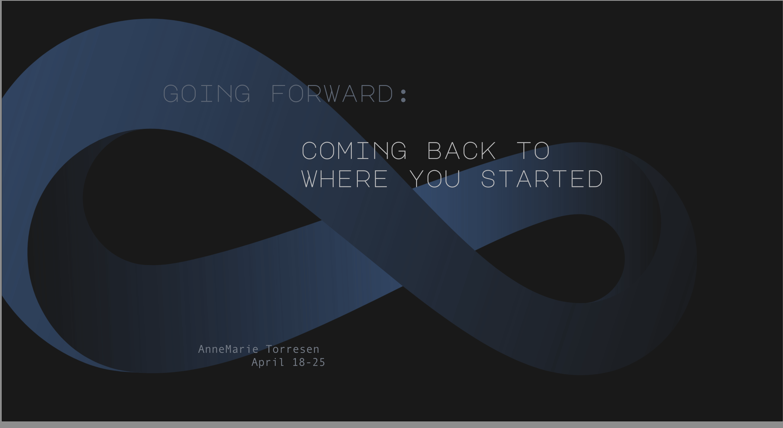 In tandem with the corridor exhibition, Going Forward will also feature an archive website that will accumulate over the course of the semester. This navigable website can be accessed through the monitor display in the space.